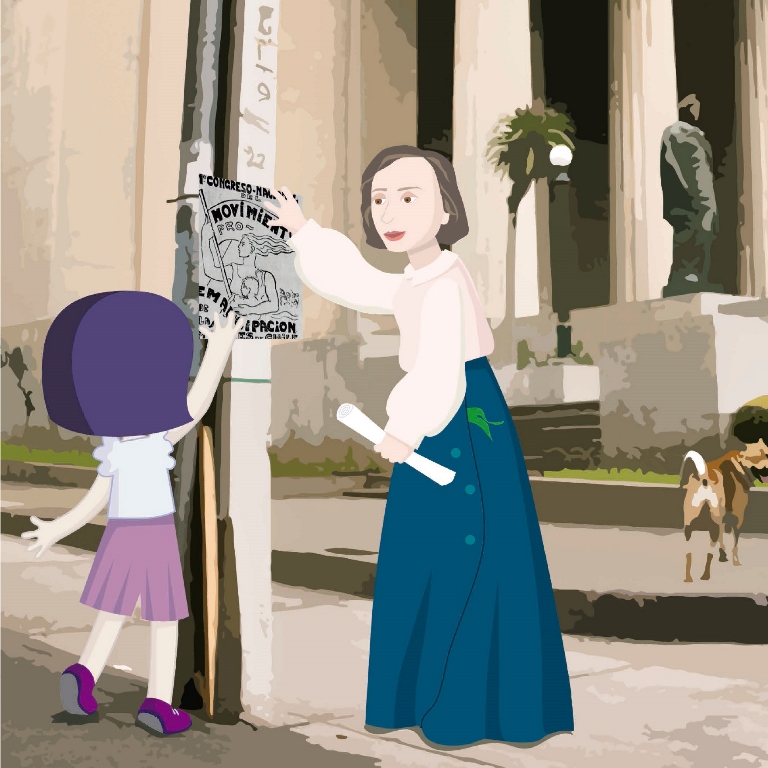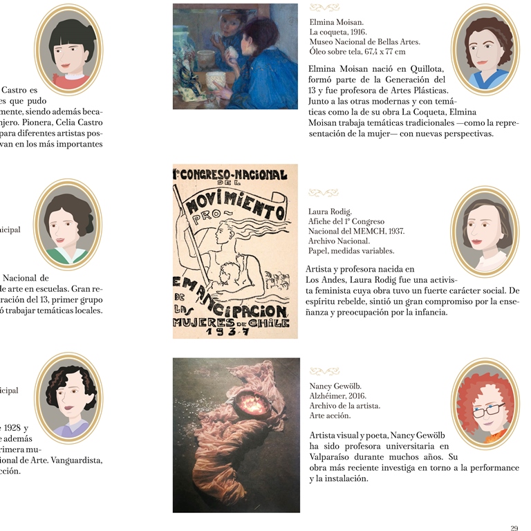 Las seis protagonizan, junto a la niña Violeta, un recorrido que permite conocer las dificultades que tuvieron las mujeres para acceder a la enseñanza artística oficial y por qué no aparecen sus obras en los libros tradicionales de arte.